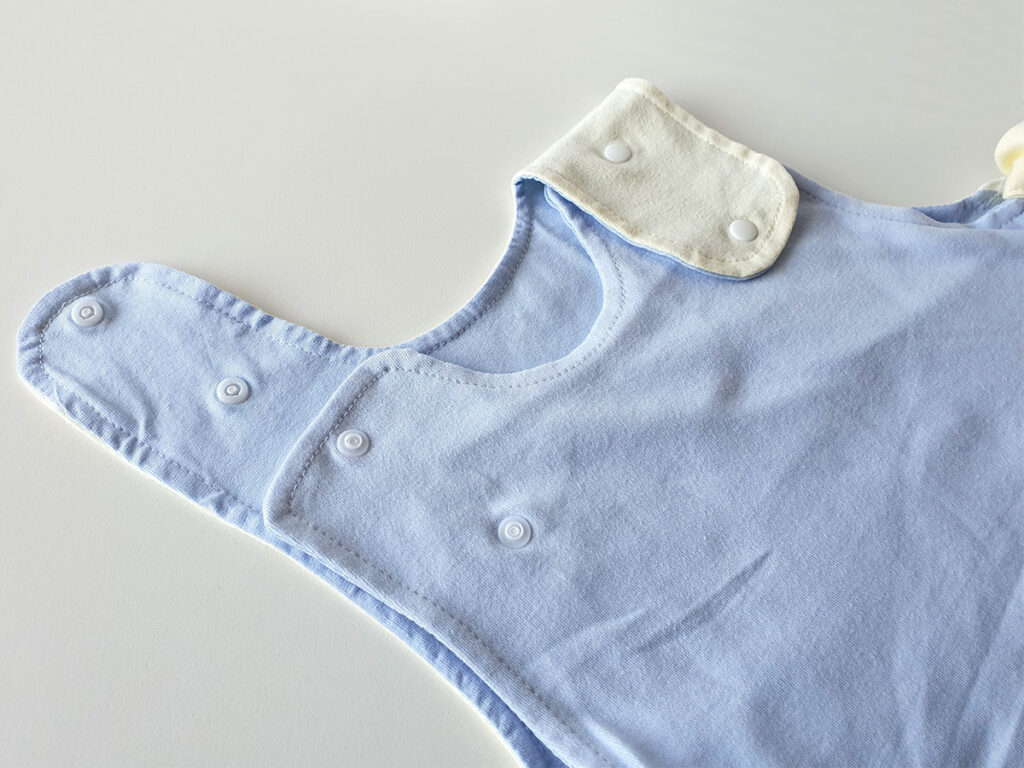 Eine der besonderen Eigenschaften unseres Babyschlafsacks ist seine Anpassungsfähigkeit. Er ist mit verstellbaren Druckknöpfen ausgestattet, die es ermöglichen, die Größe des Schlafsacks nach Bedarf anzupassen. Dadurch kann der Schlafsack mit dem Baby mitwachsen und bietet eine langlebige Lösung, die sowohl nachhaltig als auch kosteneffizient ist.